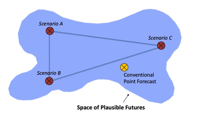 In the development of the three US scenarios from 2022 to 2050 climate change and energy issues were inseparable. I relied on the IPCC assessment reports, particularly the Sixth Assessment findings released in 2021, the Fifth Assessment cycle reports completed in 2014, and Fourth Assessment cycle reports completed in 2007, on climate change issues. For energy issues, I primarily relied on US Department of Energy projections, International Energy Agency reports, BP Statistical Review of World Energy 2020, and Royal Dutch Shell scenario reports to identify the major drivers.